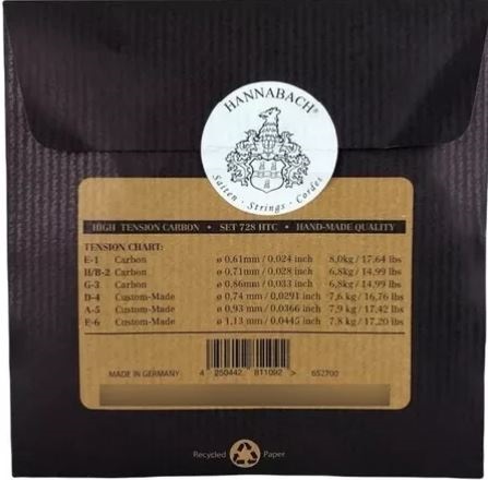Hannabach 1 Set 728 HTC Tensión Alta Carbono Set Cuerdas Guitarra Clásica