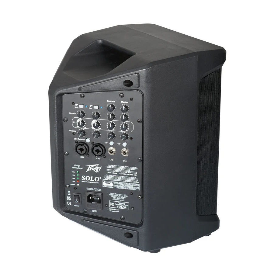 El amplificador portátil Solo, alimentado por batería, es ligero y versátil, ideal para actuaciones callejeras, megafonía, giras y para tocar tu instrumento favorito fuera de casa. Para los músicos, el Solo supone una revolución. Sus múltiples canales y su función de reverberación te permiten conectar tu guitarra o teclado y tocar con un sonido de alta calidad. El exclusivo selector de entrada de guitarra de Peavey cambia el tipo de entrada y la ecualización del canal de guitarra para optimizarlo para el instrumento. Además, la exclusiva función Peavey Kosmos ayuda a realzar las cuerdas apagadas y a mejorar tu interpretación.