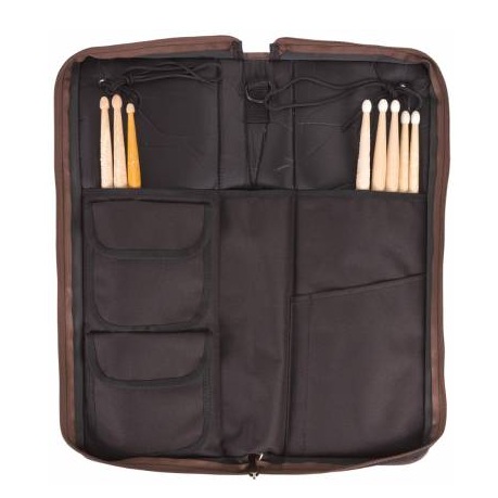 La Sabian Arena Stick Bag AS1BB es una bolsa profesional hecha de nylon extremadamente resistente. El bolsillo del mástil está equipado con varios compartimentos en el interior y otro gran bolsillo en el exterior. Se utiliza un lazo adicional para sujetar la bolsa para palos al Tom del piso. También destaca en color por su acabado negro y los acentos marrones de las bolsas de bordado convencionales.