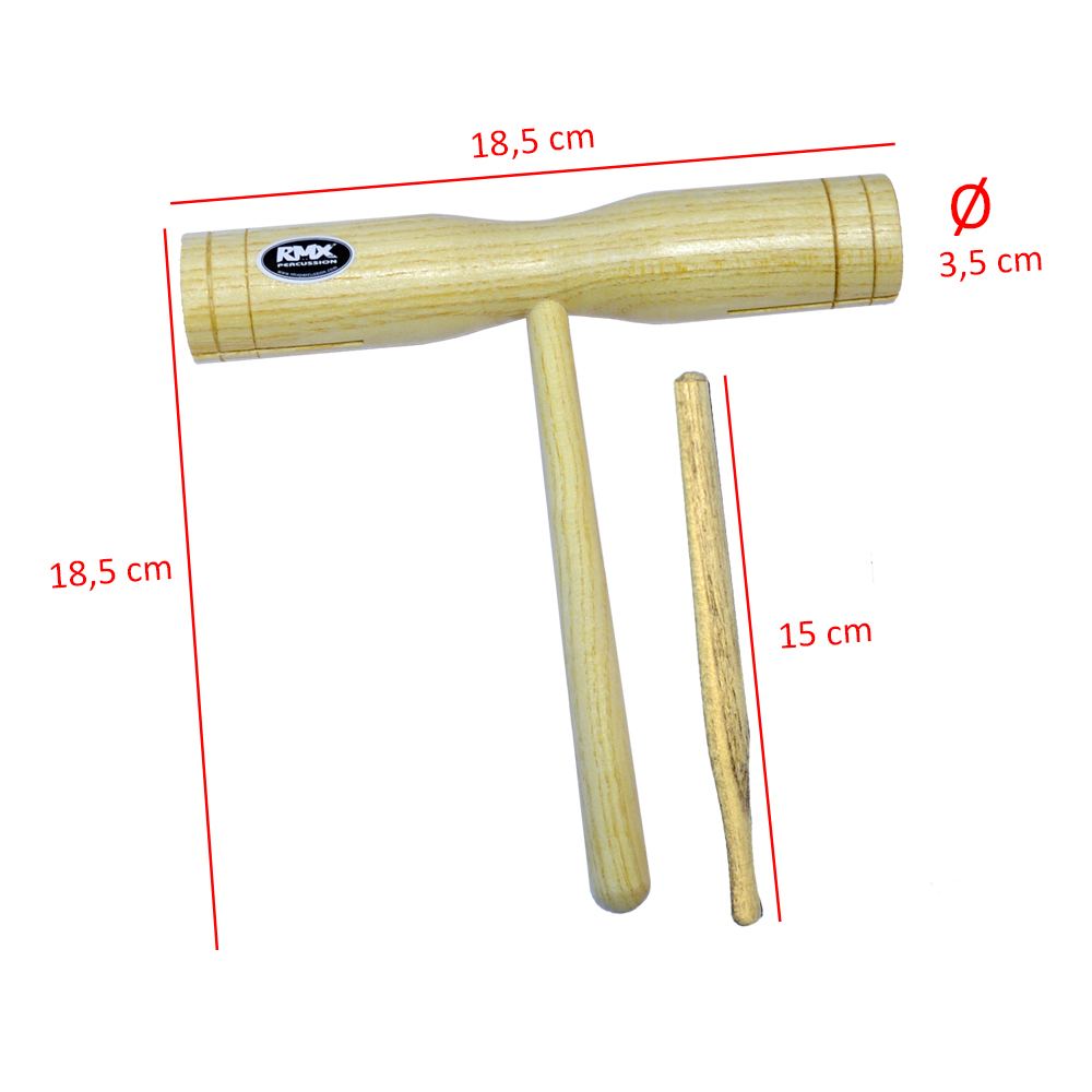TOC-TOC DE MADERA GDE., 18,5CM DE ALTO, 18,5 CM DE LARGO, 3,5CM DE DIAMETRO, MAZO 15 CM DE ALTO